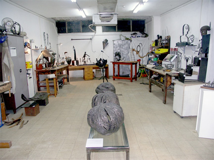 Different metals have different characteristics, and they are treated in different ways. I use them all as raw materials for my creative needs. Recently I began incorporating iron in my jewelry and other materials, such as paper, cloth and plastic, in my iron sculptures. I use silver, gold and very fine wires for my small pieces, and iron for construction of my larger works. |