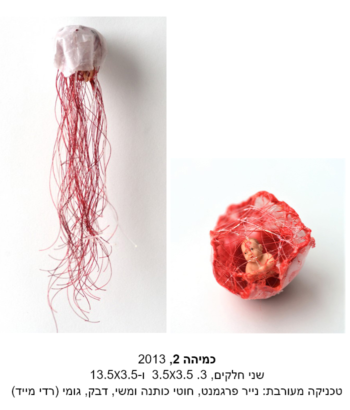 "ורוניקה אלרן יצרה קבוצת עבודות קטנות, על גבול התכשיט, התכנסות למעין כמוסת זמן פרטית. העבודות מהדהדות את הרצון להיות אם לצד הגעגוע אל ילד שנהרג, המתורגם לחזרה האובססיבית על אלמנט של בובת תינוק בווריאצות שונות".